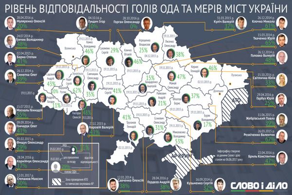Аналітики видання “Слово і діло” підрахували скільки своїх обіцянок виконали керівники обласних адміністрації та міські голови.