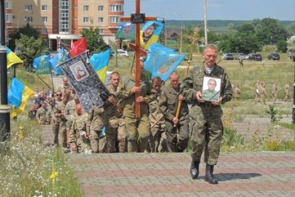 Процесія військових побратимів померлого із жовто-блакитними прапорами розтяглася через місто до палацу культури РАЕС. Дорогою зупинялися автомобілі та перехожі, щоб віддати останню шану захисникові.