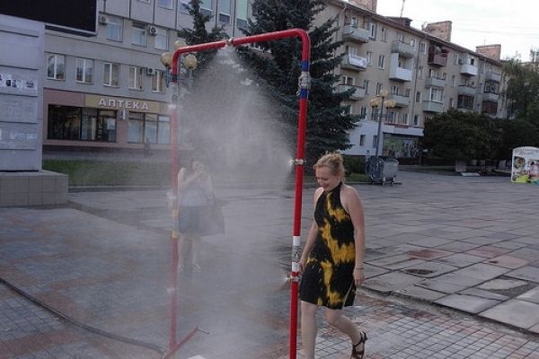 У Рівному встановили спеціальні розпилювачі води, аби люди могли врятуватсия від спеки.