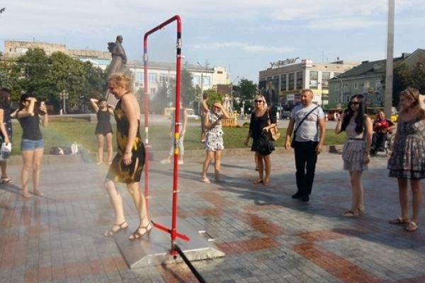 Рівненські рятувальники встановили ”Освіжаючу рамку” на майдані Незалежності, аби люди могли охолоджуватися.