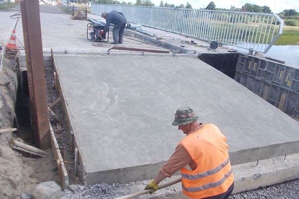 Волинська містобудівельна компанія продовжує роботи по ремонту моста на митному посту КПП «Прикладники», що у Зарічненському районі. Шляховики влаштовують перехідну плиту, забірну стінку берегової опори та відновлюють зруйнований тротуарний блок.