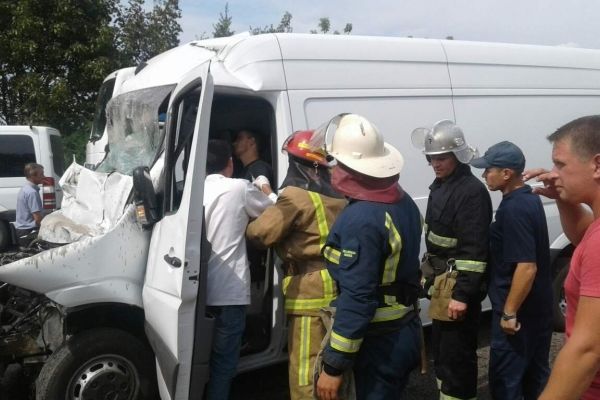 Водія з понівеченого буса діставали рятувальники (Фото)
