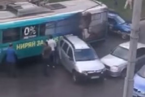 Зіштовхнулися автомобілі «Рено» та «Хюндай». Після цього в задню частину позашляховика «Рено» в’їхав тролейбус.