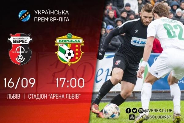 Вже цієї суботи на стадіон «Арена Львів» «Верес» зіграє черговий матч в рамках чемпіонату УПЛ. У Львові червоно-чорні прийматимуть «Ворску» з Полтави. Початок гри о 17-й годині.