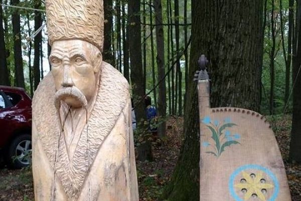 Поряд з кобзарем з дерева вирізьбили однойменний музичний інструмент, адже саме бандуристи передавали з покоління в покоління надбання української усної народної творчості.