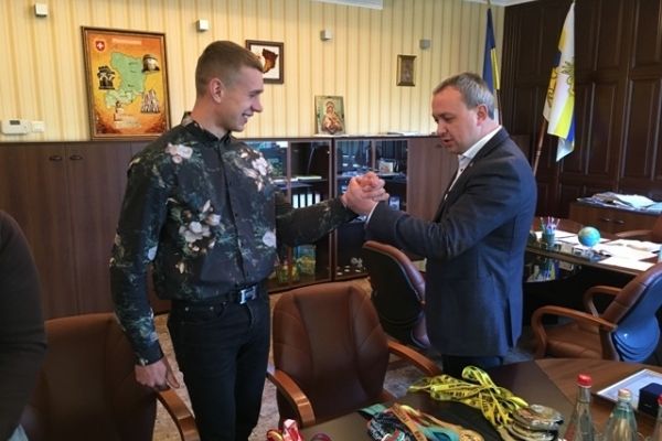 Під час зустрічі керівник області вручив видатному спортсмену сертифікат на одноразову грошову винагороду на суму 16 тисяч гривень та цінний подарунок – годинник облдержадміністрації.