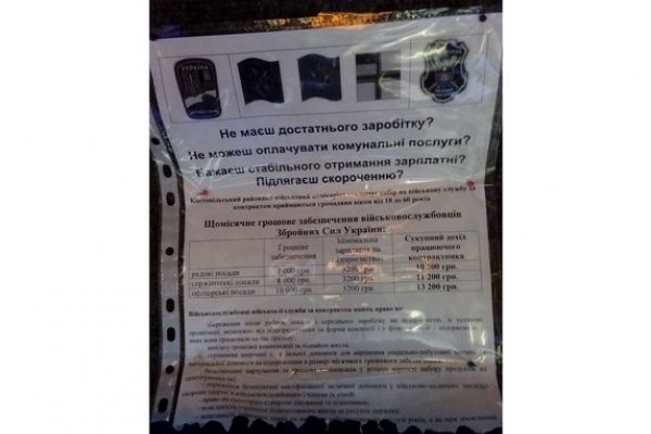 “Не маєш достатнього заробітку? Не можеш оплачувати комунальні послуги? Бажаєш стабільного отримання зарплатні? Підлягаєш скороченню?” – чималими буквами виведено у тексті оголошення. Насправді, воно таки привертає увагу. Цікаво, чи стимулює такий маркетинговий хід збільшенню кількості контрактників?