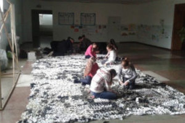 У Рівному до Дня Захисника України педагоги та учні ЗОШ №27 сплели маскувальну сітку для наших вояків в АТО.