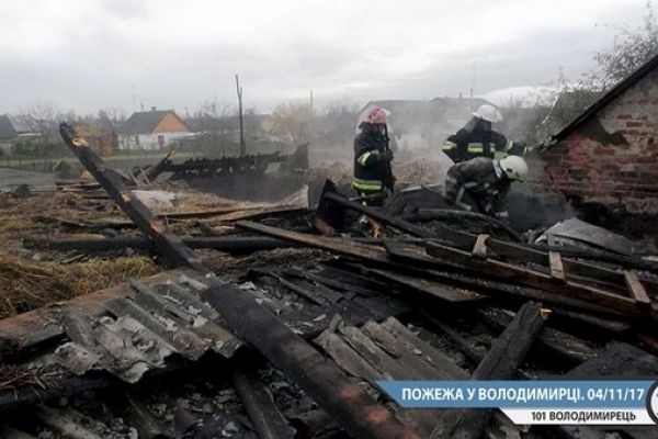 4 листопада об 05 год. 39 хв. за номером 101 до пожежно-рятувальної служби надійшло повідомлення про пожежу в приватному господарстві в смт. Володимирець по вул. Котляревського. Горіла дерев’яна господарська будівля, розмірами 9х7м., крита шифером та руберойдом. На місце події відразу було направлено черговий караул рятувальників 11-ої державної пожежно-рятувальної частини.
