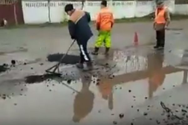Здолбунів: асфальт кладуть прямо в калюжу (Відео)