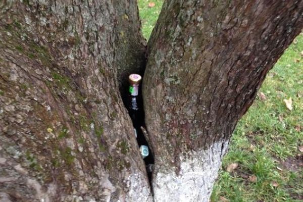Викрадений алкоголь знайшли не лише в його будинку, сховав чоловік пляшки і в стовбурі дерева.