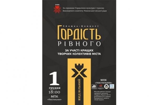 1 грудня о 18.00 в МПК “Текстильник” відбудеться церемонія нагородження видатних рівнян у рамках проекту “Гордість Рівного”.