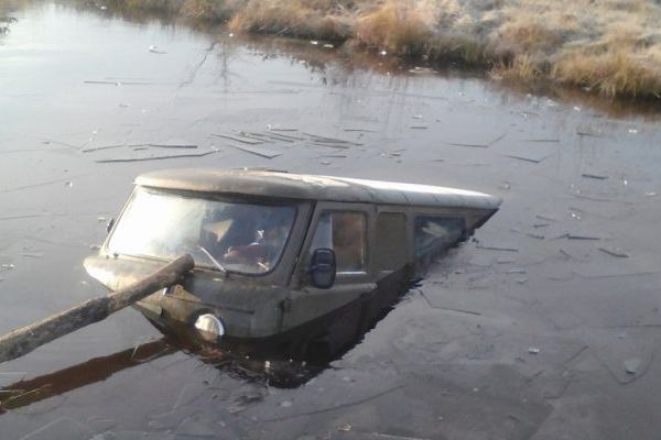 Фото опублікували в тематичній спільноті «Клондайк», там старателі вихваляються трофеями та діляться нещастями. Причина того, чому машина майже повністю пішла під воду, наразі невідома. Швидше за все УАЗиком намагались проїхати по першому тоненькому льодку, що покрив водойму або просто не впорались з керуванням.