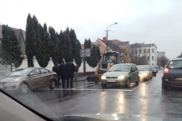 На вулиці у Рівному не розминулися трактор та автомобіль (Фотофакт)