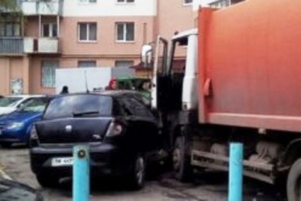 В обласному центрі трапилась ДТП. Сміттєвоз протаранив легковика у дворі Рівненської багатоповерхівки.