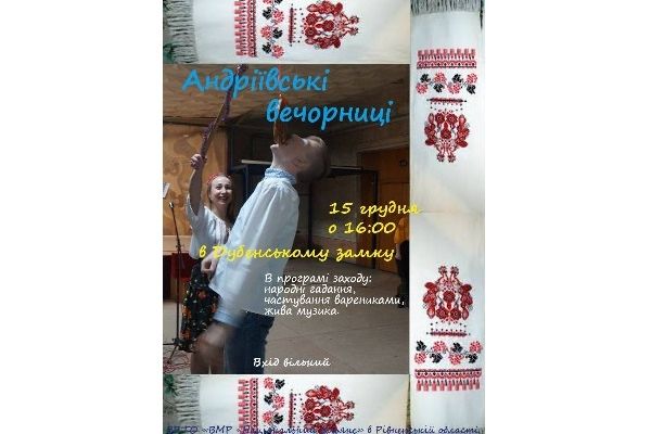 Святкування Андріївських вечорниць у Дубенському замку відбудеться в п’ятницю, 15 грудня о 16:00. Про це повідомляють на сайті Інформаційний портал м. Дубно.