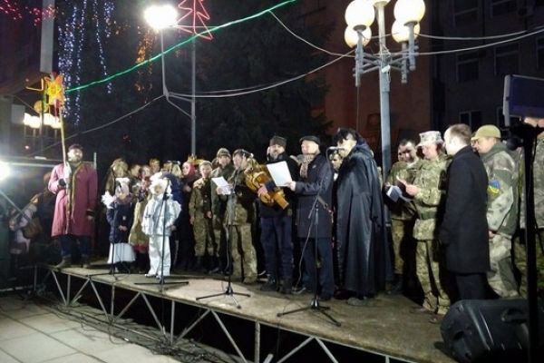 В рамках дійства фолькльорні колективи почали виступати на Майдані Незалежності. Приміром, відкривав Різдвяну феєрію аматорський хор “Горинь” із “Текстильника”. Але родзинкою свята став виступ бійців АТО, котрі виконали дві колядки та підготували “вертепну” святкову постановку. У ній традиційні мотиви дещо осучаснили – скажімо, головним антагоністом замість Ірода став Путін, який полонив “ангеликів”, і йому протистояли “Ангели світла”.