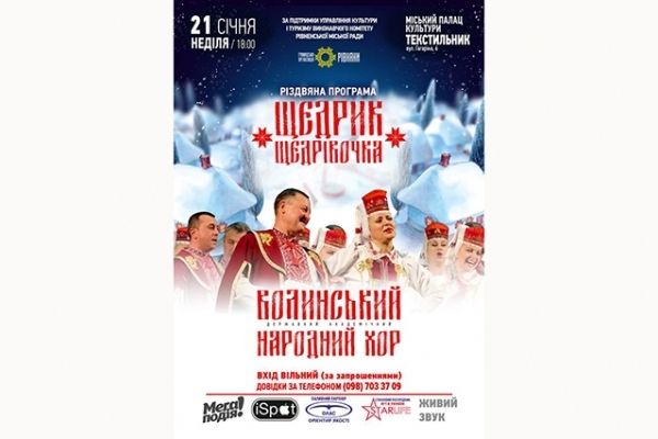 У неділю, 21 січня, в Рівненському міському Палаці культури «Текстильник» відбудеться концерт Волинського державного академічного хору. Музиканти з Волині презентують різдвяну програму «Щедрик щедрівочка».