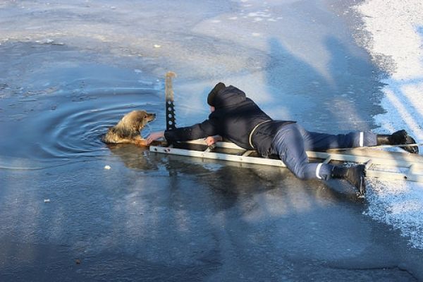 Собака провалилася під лід: люди викликали рятувальників (Фото)