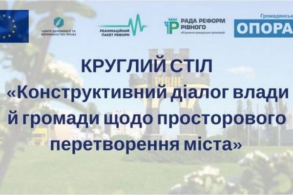 У понеділок, 22 січня, о 14.00 у приміщенні Інформаційно-освітнього простору InfoHub (м. Рівне, вул. Словацького, 3а) відбудеться круглий стіл «Конструктивний діалог влади й громади щодо просторового перетворення міста».