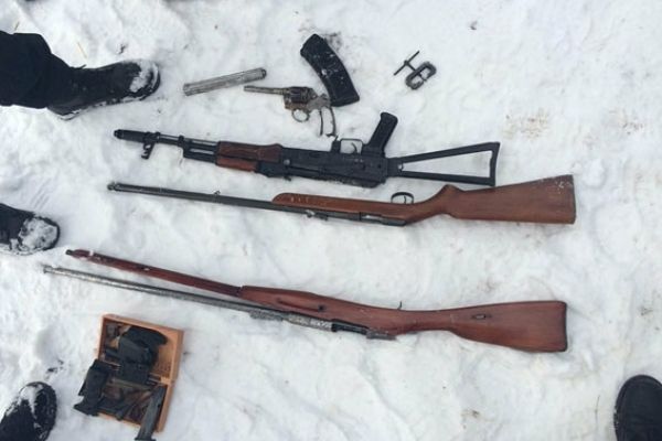 У підсобному приміщенні поліцейські виявили автомат АКС-74У калібру 5,45 мм, гвинтівку Мосіна, рушницю, корпус до револьвера системи «Наган», два магазини до АКС, частину затвору, сім пластикових пістолетних насадок на рукоятку, магазин від пістолета, саморобний ствол, частину ударно-спускового механізму до пістолета та пенал для чистки зброї.