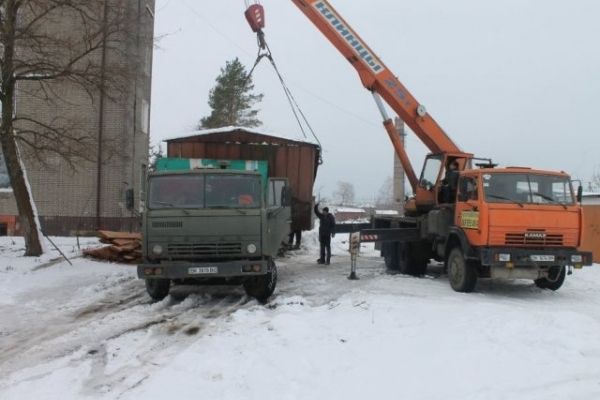 Гаражі демонтовують Робітники комунального підприємства «Трудівник» на вулиці Набережна біля житлового будинку №2.