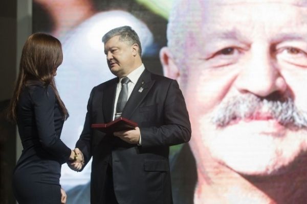Глава держави передав нагороду доньці активіста Наталії під час відкриття виставки, присвяченої учасникам Революції Гідності – творчим особистостям «Переведи мене через Майдан».