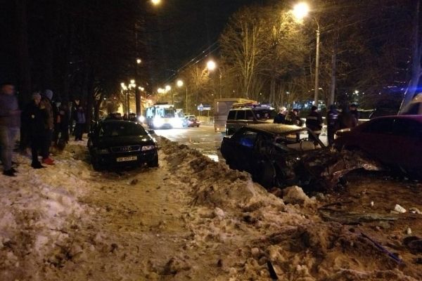 Ввечері 18 лютого на вул. Соборній перед перехрестям з вул. Старицького сталася ДТП, одна з автівок розтрощена вщент. Нині на зазначеній ділянці дороги ускладнений рух.