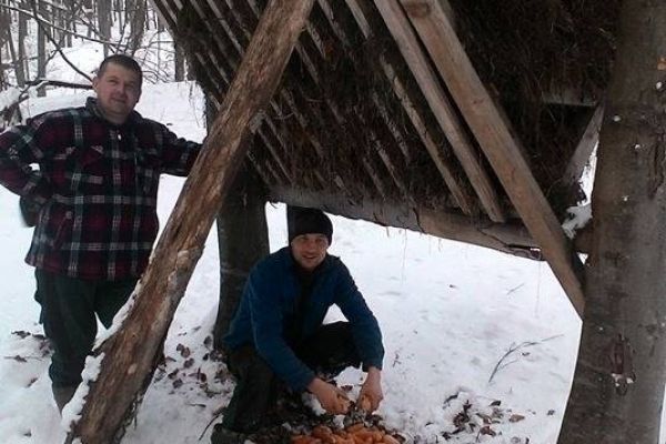 Водичанський низовий колектив РТМР «Говерла», що на Рахівщині, в своїх мисливських угіддях проводить підгодівлю диких звірів.