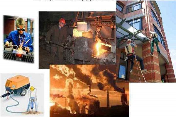 У разі тривалої дії на організм високих концентрацій пилу можуть виникнути хвороби легенів і дихальних шляхів, під впливом високих рівнів вібрації – вібраційна хвороба, внаслідок дії шуму – захворювання органів слуху – неврит, хімічних речовин – отруєння.