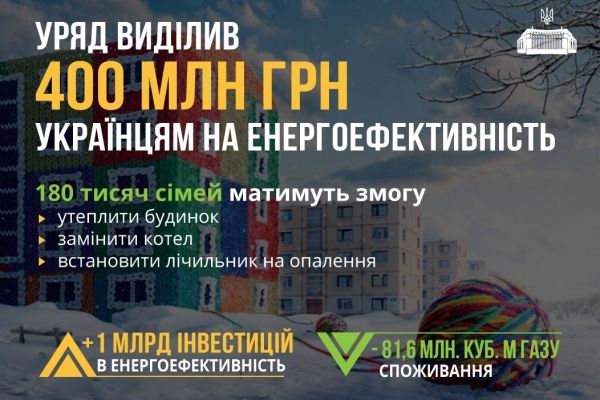 Кабінет Міністрів України спрямував 400 мільйонів гривень на урядову програму з енергоефективності, яку в народі називають «теплі кредити». Втричі, у порівнянні з минулим роком, збільшено фінансову підтримку для ОСББ/ЖБК.