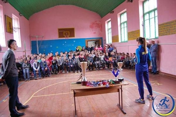 Окрім цього, гостя провела для учнів традиційну розминку, у ході якої розповідала про важливість ранкової зарядки і на власному прикладі показувала як потрібно розминатися перед будь-яким заняттям спортом, бо це найкращий і найдоступніший спосіб вберегти себе від травм. На завершення заходу школярі фотографувалися з величезною кількість медалей, кубків та різноманітних нагород, які Світлана привезла з собою. А також вона відзначила трьох авторів найкращих робіт конкурсу спортивного малюнку, в якому напередодні частина дітей взяла участь.
