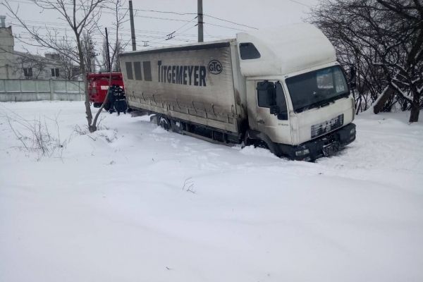 Рятувальники, використовуючи автомобіль підвищеної прохідності, відбуксирували вантажівку на безпечну ділянку дороги, після чого водій машини продовжив свій рух.