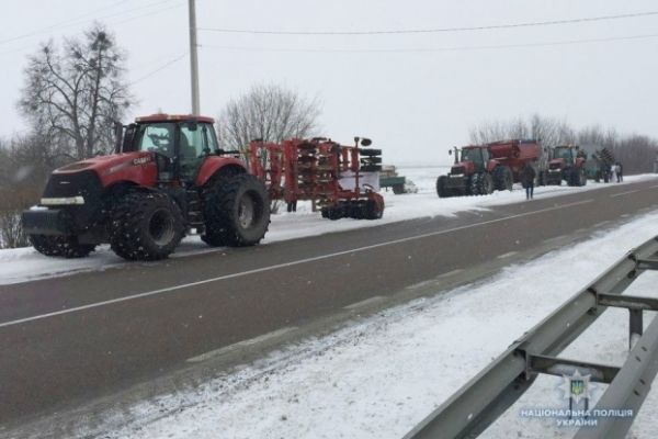 Понад сотня людей безперервно рухаються пішохідним переходом. Обабіч дороги вони розмістили десять одиниць аграрної техніки. У зв’язку з цим рух на зазначеному відрізку траси «Київ-Чоп» частково ускладнено.