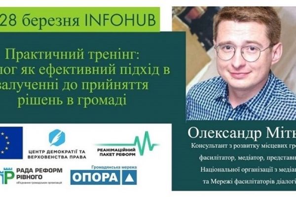 28 березня у INFOHUB відбудеться тренінг «Діалог як ефективний підхід до залучення у прийнятті рішень громади».
