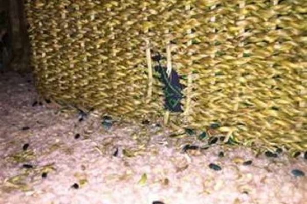 Усі присутні разом так і ойкнули! Вони побачили у щойно відчиненому приміщенні живописно-розгромну картину: на полицях, де колись з гордістю Гнатівна виставляла стрункими рядами літрові банки з огірочками, помідорчиками і маринованими грибочками, наразі спостерігався суцільний безлад. Дрібні шматочки паперу, порох від нього вкривали слоїки, полиці, підлогу. Так мишасті прибульці розтрощили пакети, в яких були загорнені білі сухі гриби. Грецькі горіхи, які раніше покоїлися на горішній полиці у кошику, тепер були розсипані на долівці, а кошик беззахисно непритомнів на підлозі. Соняшникове насіння, яке господиня старанно зсипала у пошиті крамні мішечки, тепер строкато заполонило увесь простір комори. На долівці – кілька розбитих півлітрових слоїків. І ще: найгостросюжетніша специфічна деталь завершувала картину небаченого гардимеру: одна пола старого халата господині, який висів на цвяшку, чомусь дивним містичним способом розхитувалася, як стрілка стінного годинника. Максимально наблизившись до імпровізованої гойдалки, давлячись від сміху, другий член екіпажу – симпатяга-лейтенант – голосно інформував про обстановку, що склалася: