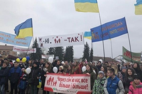 На плакатах було написано: “Українська сім’я – мама, тато і я”, “Через сім’ю нас все більше і більше”.