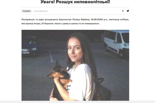 Зникла рівненська школярка Поліна Красноступ днями вийшла на зв’язок. Відомо, що вона зателефонувала мамі та повідомила, що перебуває в Чехії.
