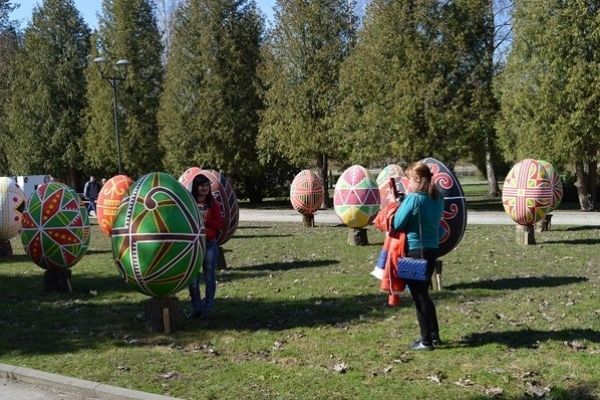 Дерева у центрі міста вже традиційно прикрасили фанерні писанки. А на алеї біля музею з’явилося 35 велетенських розмальованих яєць.