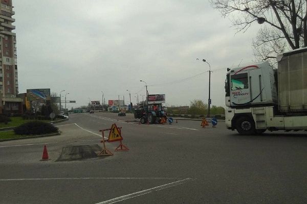 У Рівному на розвилці вулиць Дубенська та Макарова працівники ремонтної служби латають дорогу.