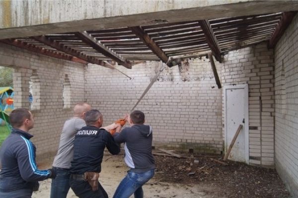 Цього понеділка рівненські поліцейські охорони демонтувати аварійний дах в підшефному дитячому навчальному закладі № 56 «Здоров’ячок» та допомогли з благоустроєм території.
