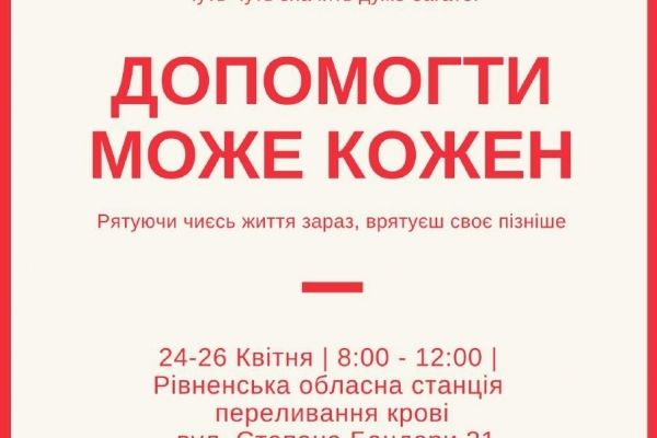 «Допомогти може кожен» – рівняни масово здаватимуть кров