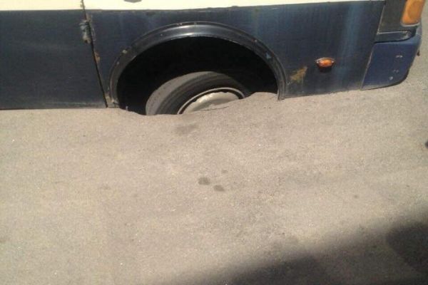 У Рівному автобус провалився під асфальт (Фото)