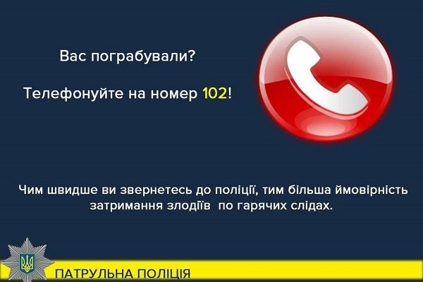 Чим швидше інформація про злочин надійде в поліцію, тим більше шансів, що грабіжники будуть спіймані, а викрадене майно повернуто законному власнику.