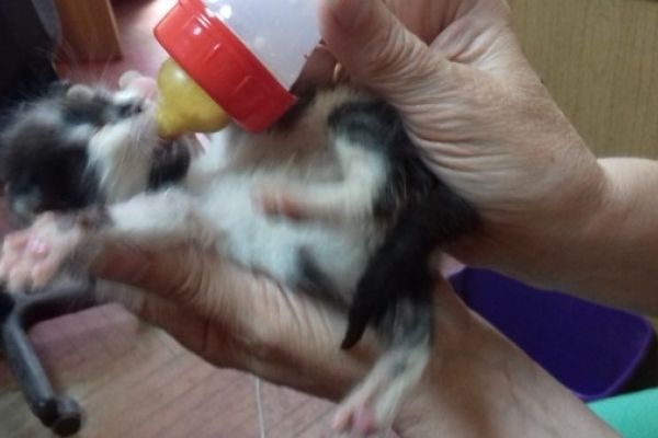 Тож кішка-мати в житті новонароджених відсутня. А годують крихіток з першого дня щиросердні люди-журналісти. Колеги розповідають, що в цій специфічній ситуації спочатку й самі розгубилися. І припустилися помилок, розпочавши годувати таке бентежне, невгамовне й геть безпорадне котяче «сімейство» молочною сумішшю для звичайного дитячого харчування. Суміш таким малим кошенятам не пішла, вони вищали, вочевидь їм боліли животики. Проконсультувавшись з ветеринарним лікарем, скоро журналісти помилку виправили, замовивши аж у Києві спеціальне харчування для штучного вигодовування кошенят.