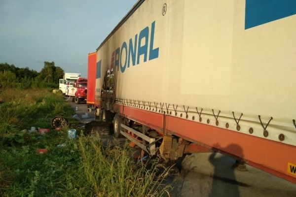Прибувши на місце виклику рятувальники встановили, що причіп вантажного автомобіля охоплено вогнем. На ліквідацію пожежі рятувальники подали один водяний ствол. Вже о 18:20 пожежу було локалізовано, а о 18:55 повністю ліквідовано. Вогнем пошкоджено колесо причіпу та 2 м2 тенту.