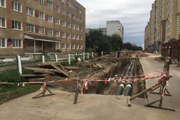 На Буковинській біля церкви, неподалік виходу на вулицю Орлова вирили величезний котлован і кладуть труби. Обмеження лиш умовне – у вигляді стрічечки, яку в темряві можна просто не побачити. Люди, які тут щодня ходять, стверджують, що донедавна її й зовсім не було.