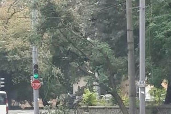 Сильний вітер, який почався ще вчора ввечері наробив чимало шкоди. Зокрема, на перехресті вулиці Соборна-Коцюбинського. До того ж, в місті багато гілок відвалюються від дерев, тому містянам бажано лишатися вдома і без нагальної потреби не виходити на вулицю.