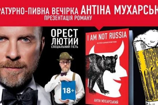 Літературно-пивна вечірка-концерт, присвячена презентації чоловічого роману Антона Мухарського «I AM NOT RUSSIA» відбудеться у пабі «Сталева Гора» 1 жовтня о 19.30. Спеціальним гостем заходу буде Орест Лютий. Про це інформує сайт закладу.