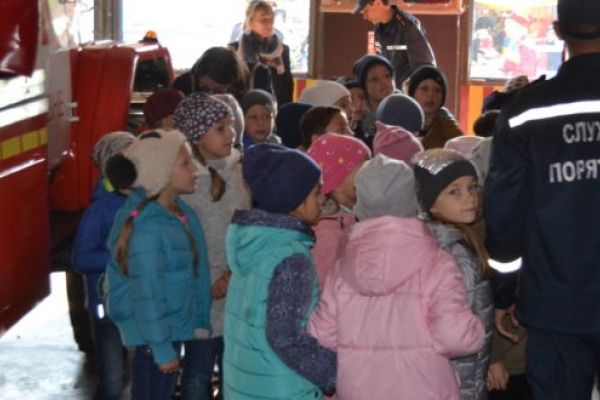Діти з цікавістю оточили транспортні засоби, в спеціальних відсіках яких зберігаються пожежні рукави, апарати для роботи в задимленому приміщенні, панорамні маски та інше аварійно-рятувальне обладнання. Школярі дізнались про те, як це спорядження використовується при ліквідації пожеж, у випадках дорожньо-транспортних пригод та рятуванні людей.